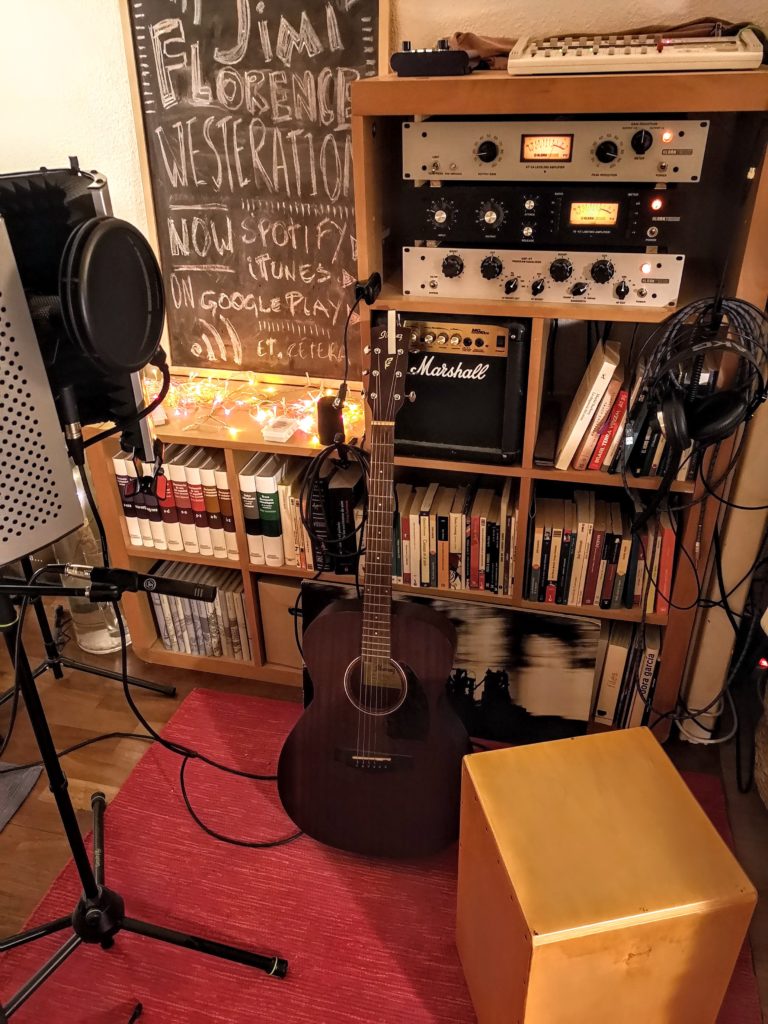Con el álbum ya cerrado a principios del otoño grabo una versión de Red White and Blue utilizando la caja de ritmos, una canción que me parece una de las más divertidas de tocar en directo. Entra en este proyecto la segunda versión de un grupo famoso, la primera Where Do You Think You’re Going de Dire Straits la grabé en 2011 y fue lanzada en single el 9 de febrero de 2017. En enero pruebo a grabar unos videos, donde la guitarra y voz se recorren en la mesa y después se mezcla y se publica en youtube. Me gustó tanto la versión de U2, I’m Still Haven’t Found What I’m Looking For, que decidí incluirla en el álbum. Infelizmente por cuestiones de licencias, a la última hora se lanzó aparte en formato single lo que sería la 12º canción. En la plataforma Bandcamp se puede escuchar el album tal cual estaba planeado.